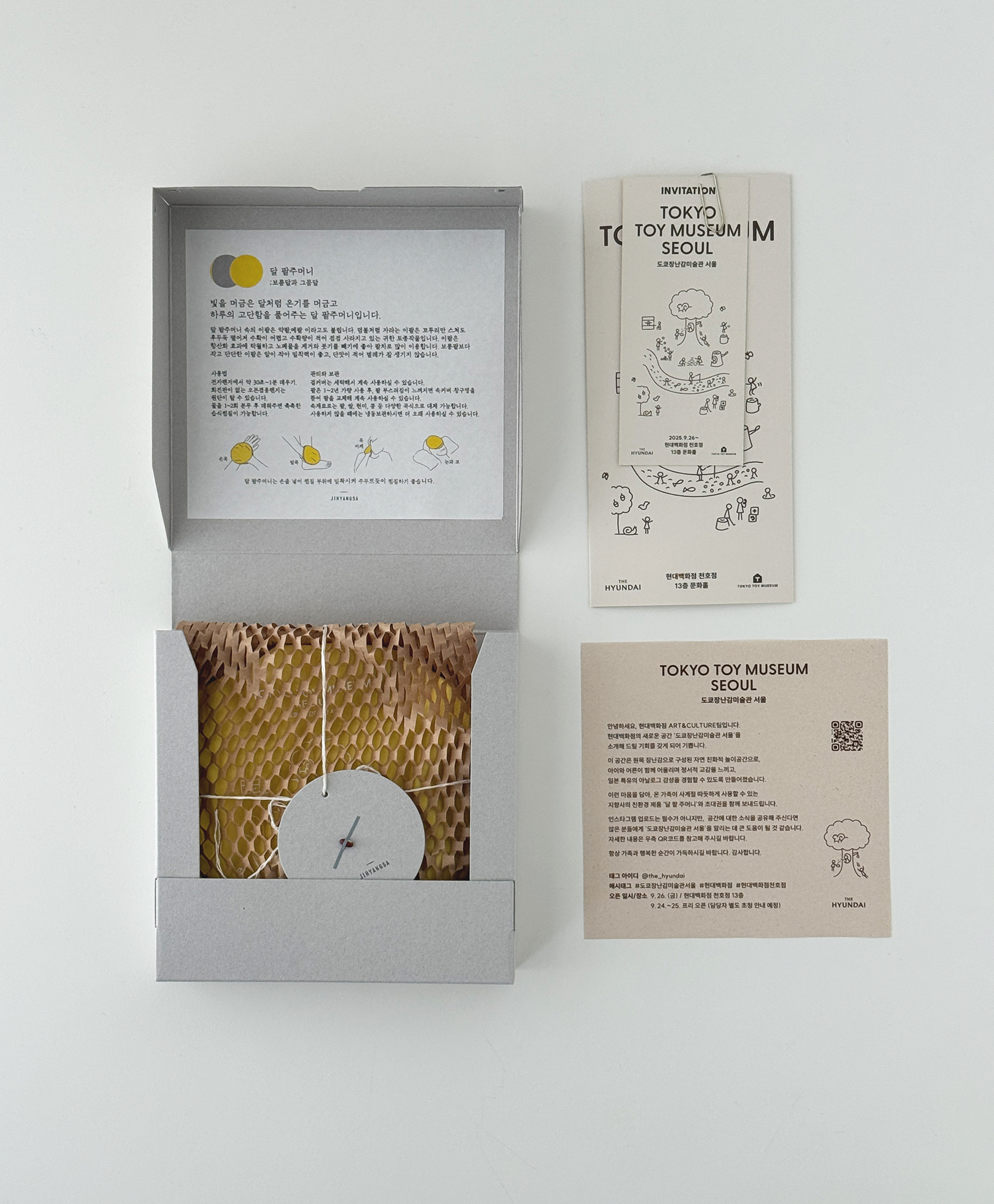 "사람이 처음만나는 예술은 장난감이다." 는 철학을 가지고 1984년 일본에서 설립된 장난감 미술관이 우리나라에 개관했습니다. 현대백화점 강동점 내 개관한 도쿄장난감 미술관의 개관 기념품으로 달팥주머니를 제작했습니다.