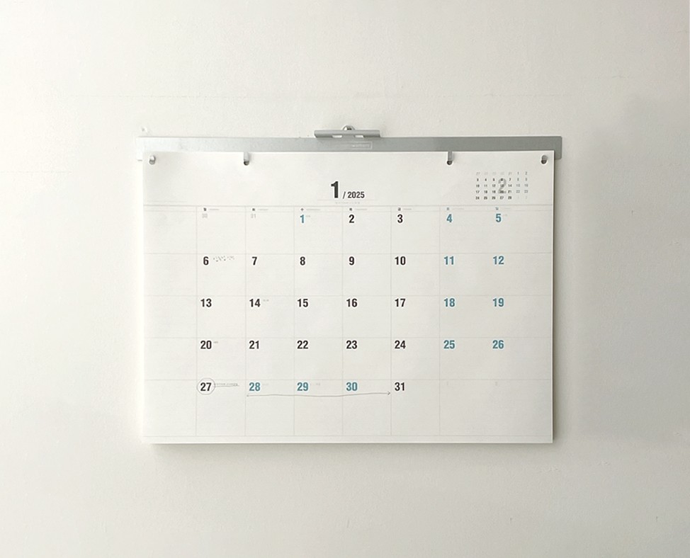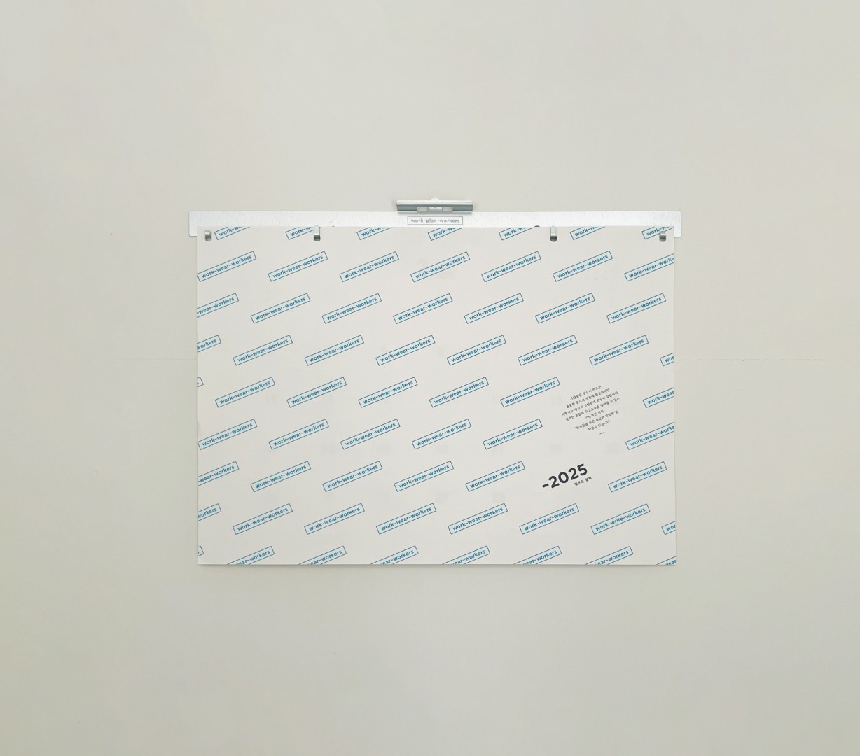 2025년의 새로운 일꾼의 달력은 달력걸개를 스틸소재로 변경하고, 달력종이는 연간달력과 표지를 포함하여 총14장으로 구성했습니다.