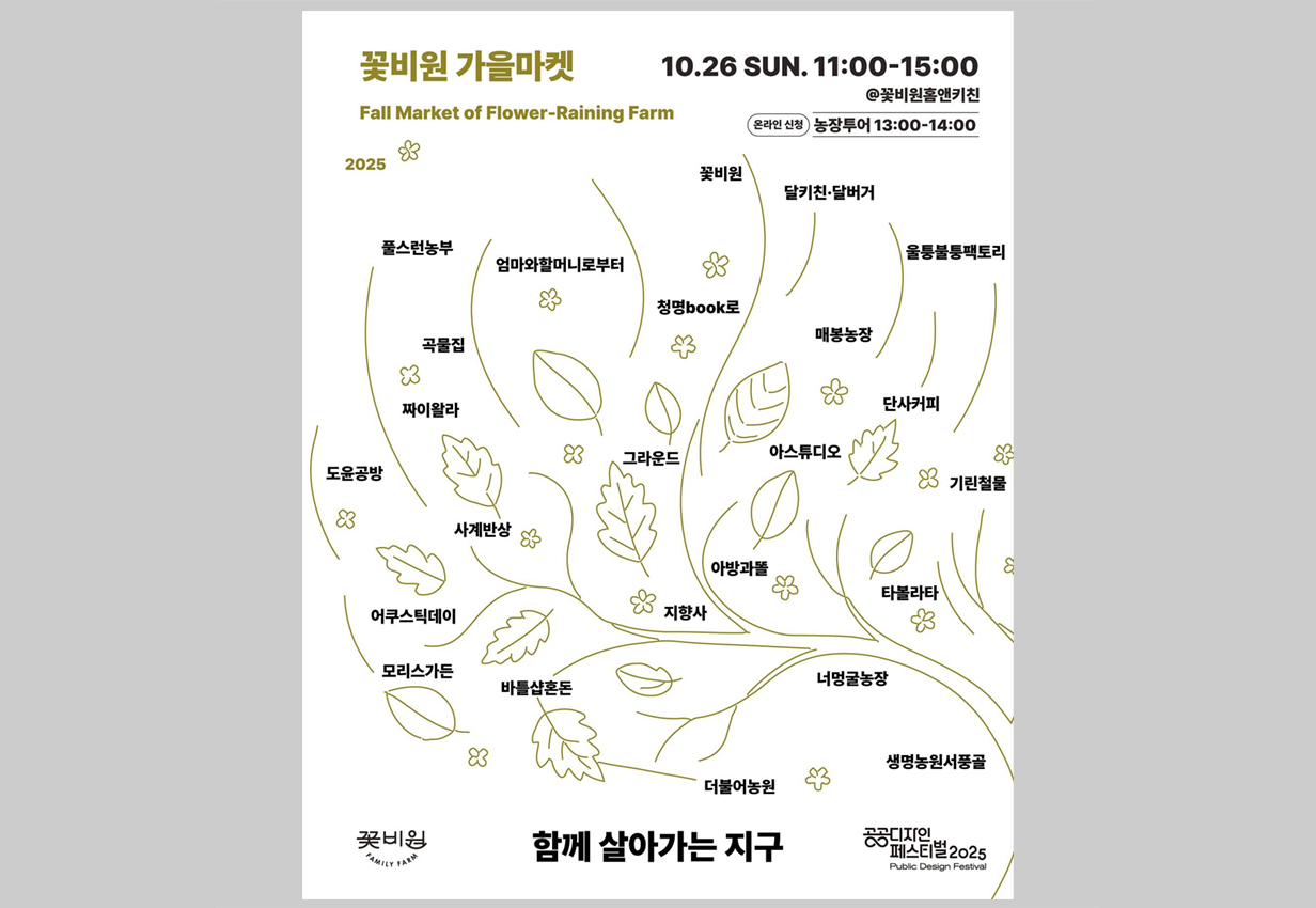 올해는 <<공공디자인 페스티벌 2025>> 전국 공공디자인 거점으로 꽃비원이 함께 하게되어 기간중에 꽃비원가을마켓을 진행하게 되었습니다.