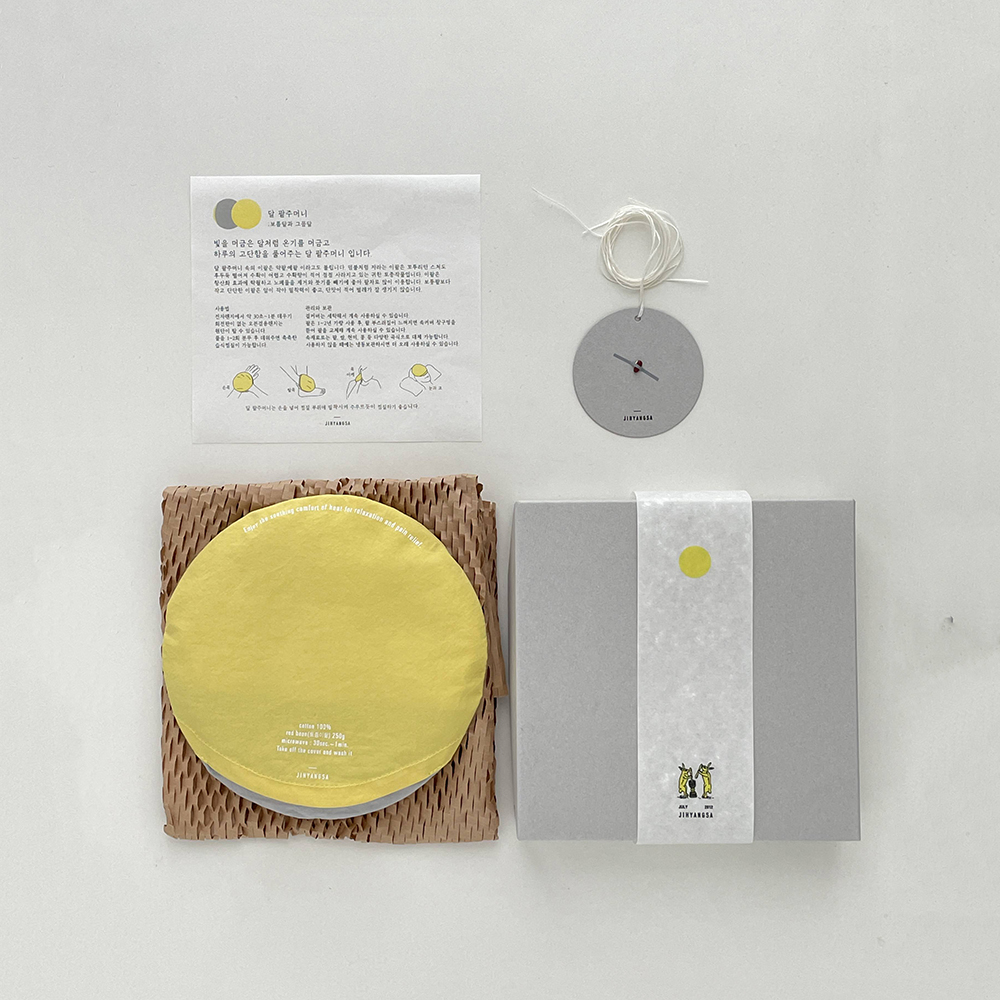 '빛을 머금은 달처럼 온기를 머금고 하루의 고단함을 풀어주는 달 팥주머니 입니다." 보름달을 닮은 팥 찜질주머니입니다. 보름달을 보며 가족의 건강을 기원하듯, 가족들의 건강을 기원하는 마음을 담아 선물해 보세요. 겉커버는 손을 넣을 수 있어 핫팩으로 쓸 때에는 손을 더 따뜻하게 감싸주고, 어깨나 무릎 등 관절 부분을 찜질할 때에는 더 밀착시켜 주무르듯이 사용할 수 있습니다.