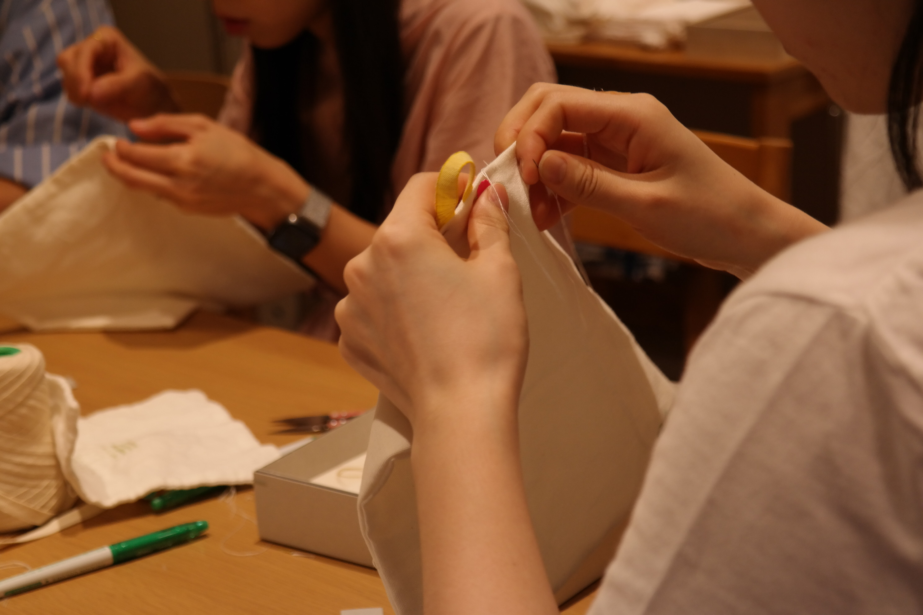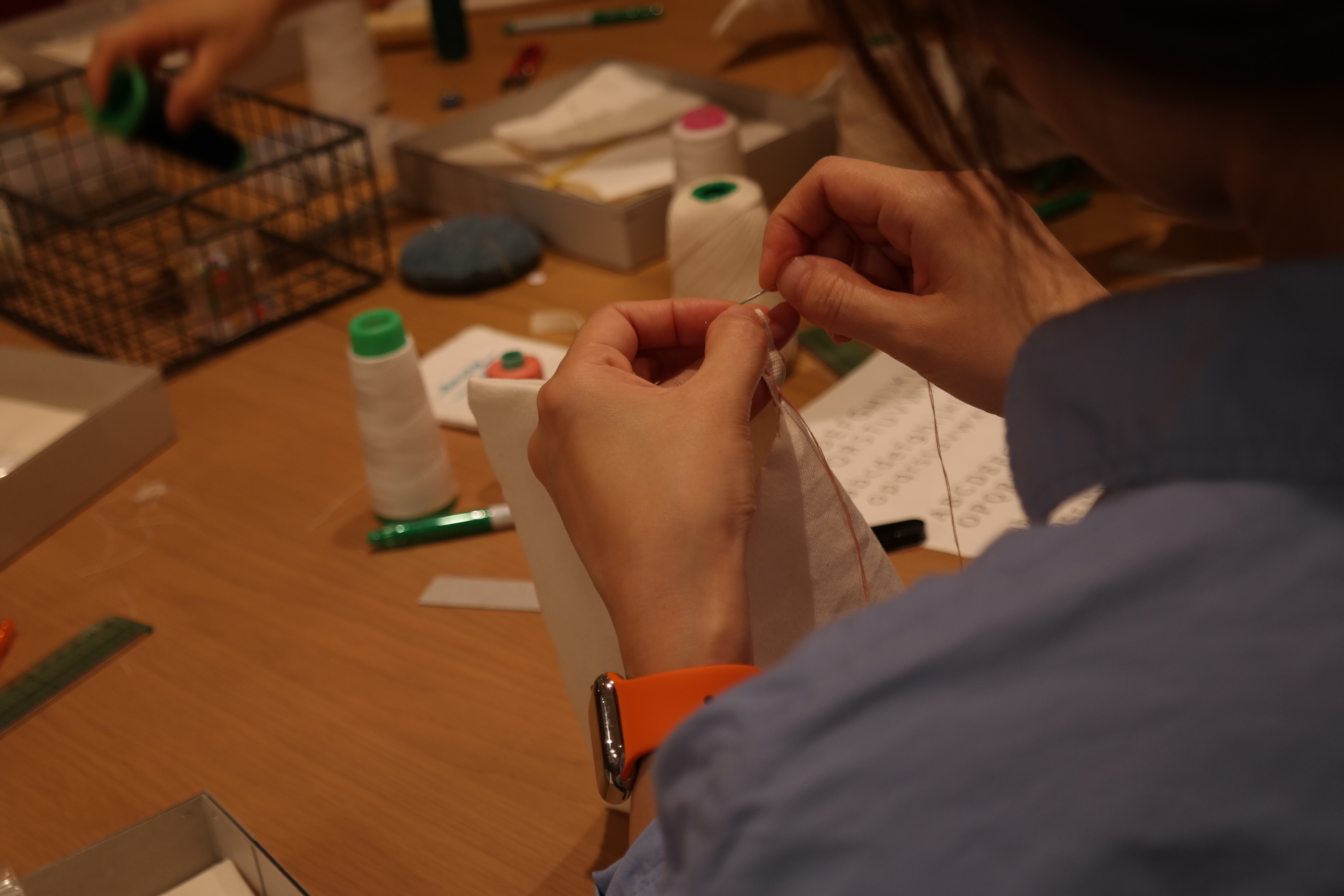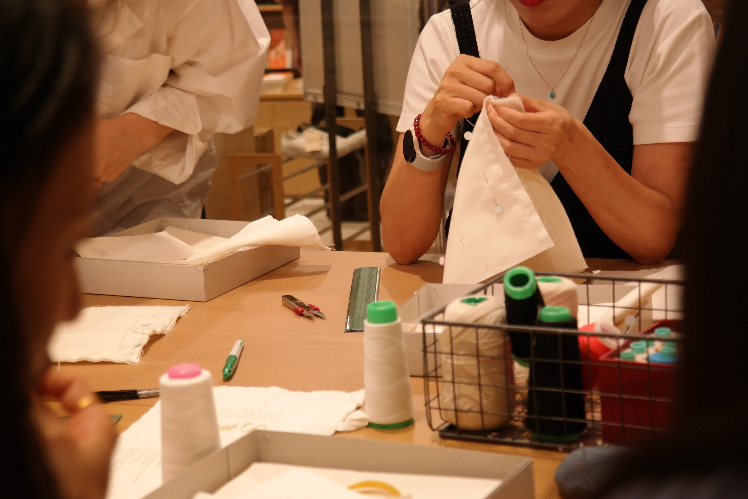 이번 워크숍에서는 워커들을 위한 성실한 작업복을 만드는 지향사와 함께 겹이 다른 3가지 소창 행주를 손바느질로 만들고, 나만의 스티치를 넣어 완성해 보는 시간을 가졌습니다.
