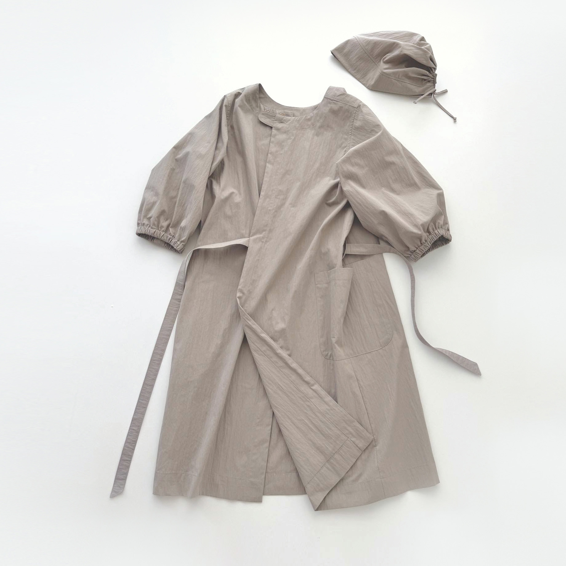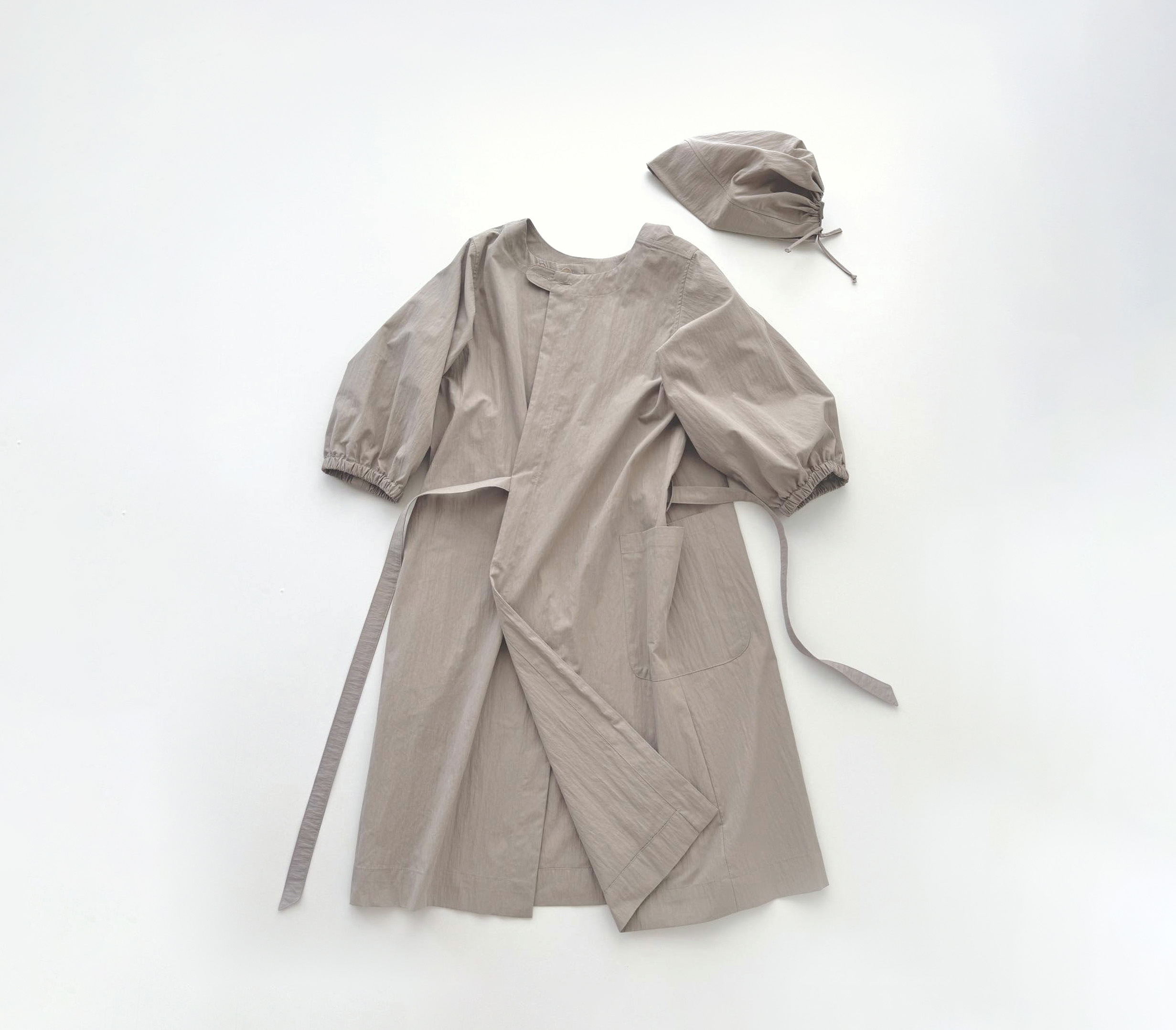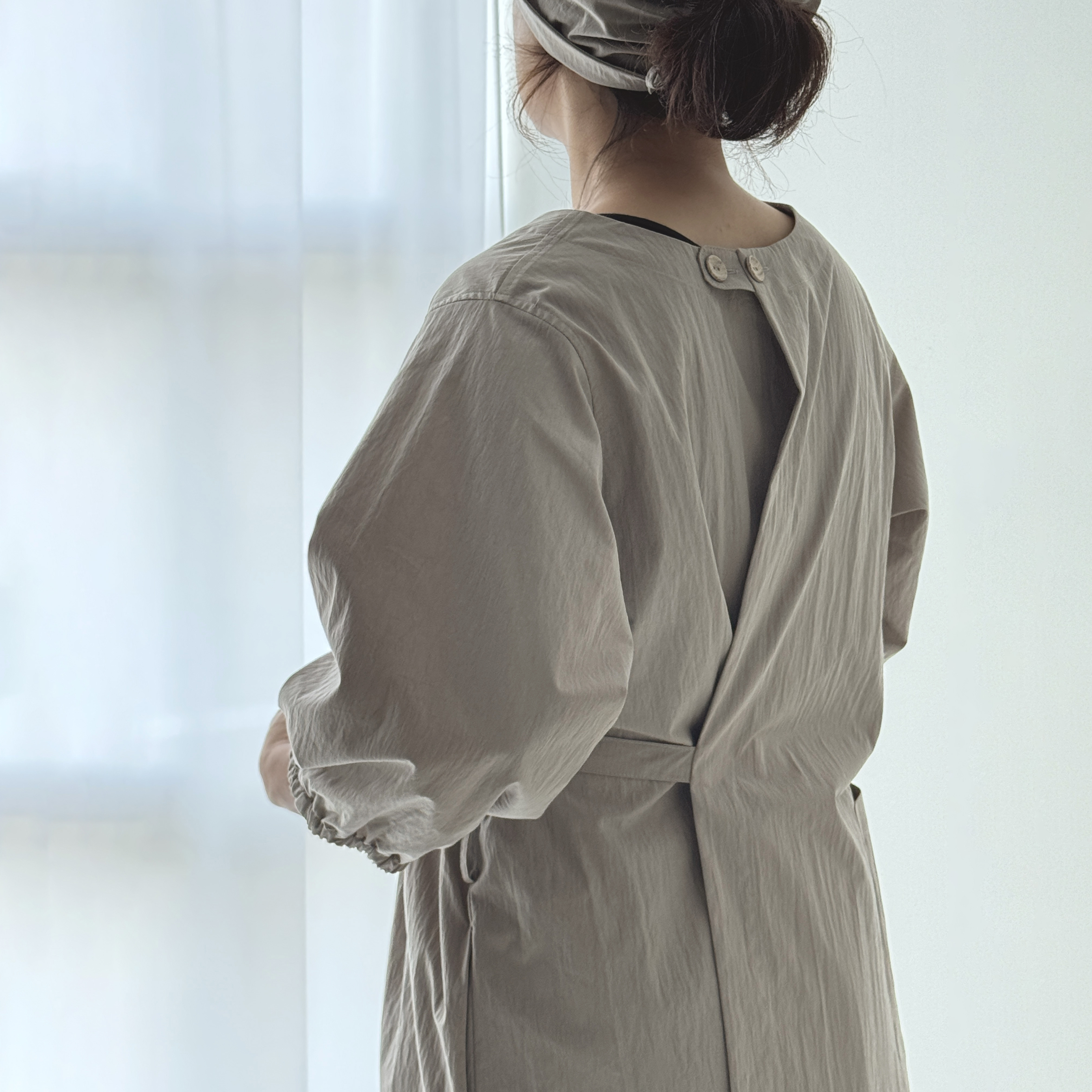 앞을 오픈하여 입으면 가운이나 자켓처럼, 뒤를 여며 입으면 원피스형 조리복처럼 활용할 수 있습니다.