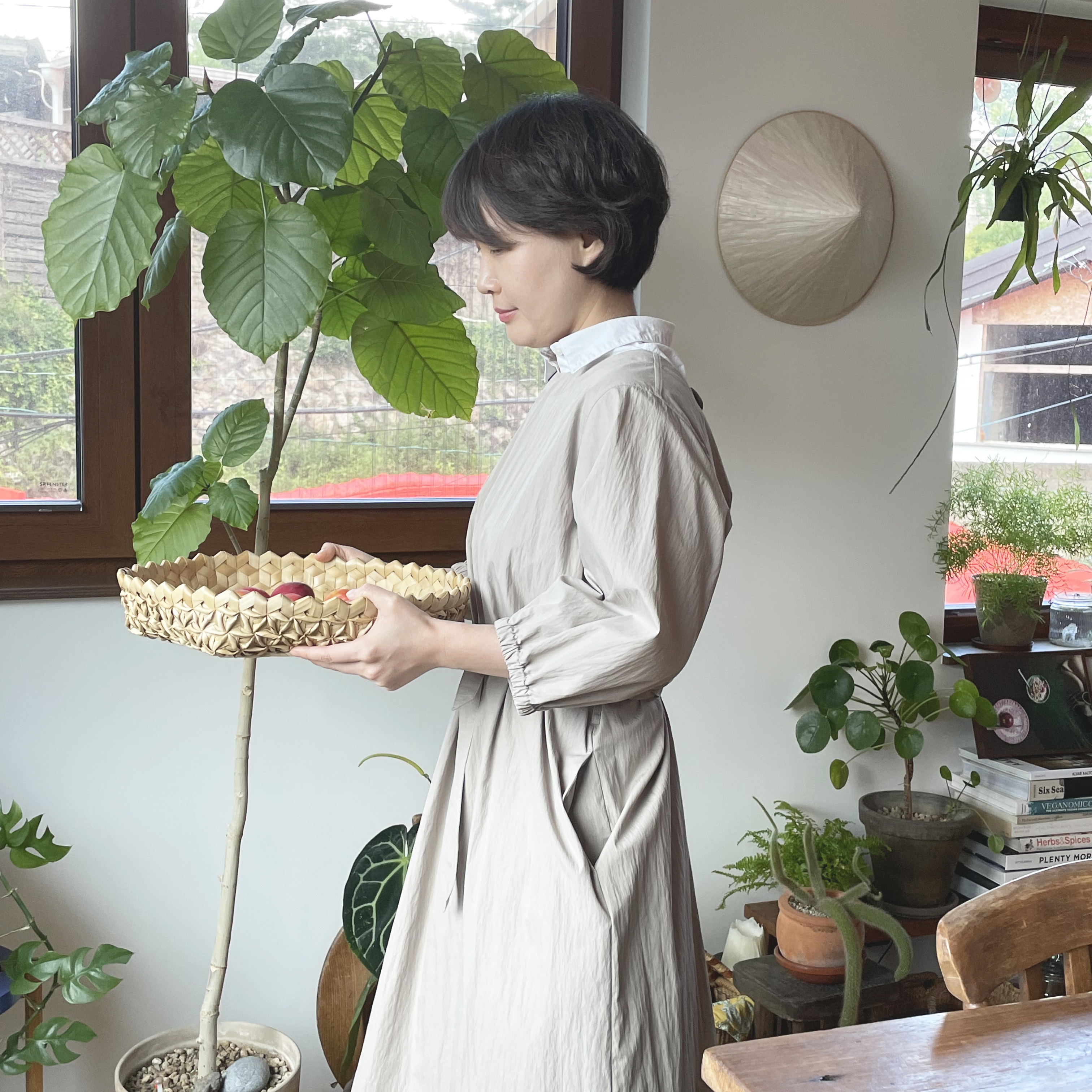 양옆에 위치한 허리끈 구멍을 통해 어느 방향으로든 허리를 묶을 수 있어, 착용자의 스타일과 편의에 맞게 자유롭게 조절할 수 있습니다.